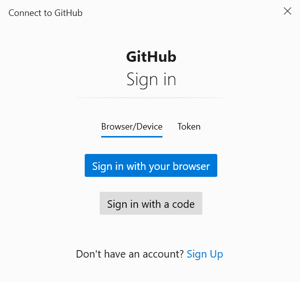 10. Git Connect 방법을 설정합니다. Sign in with your browser를 선택하시면 됩니다.