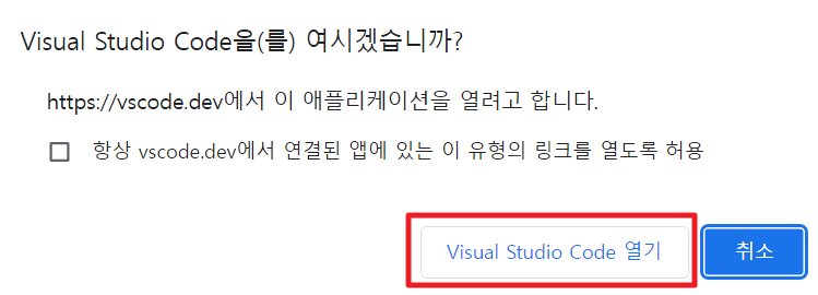 6. Visual Studio Code 열기를 클릭합니다.
