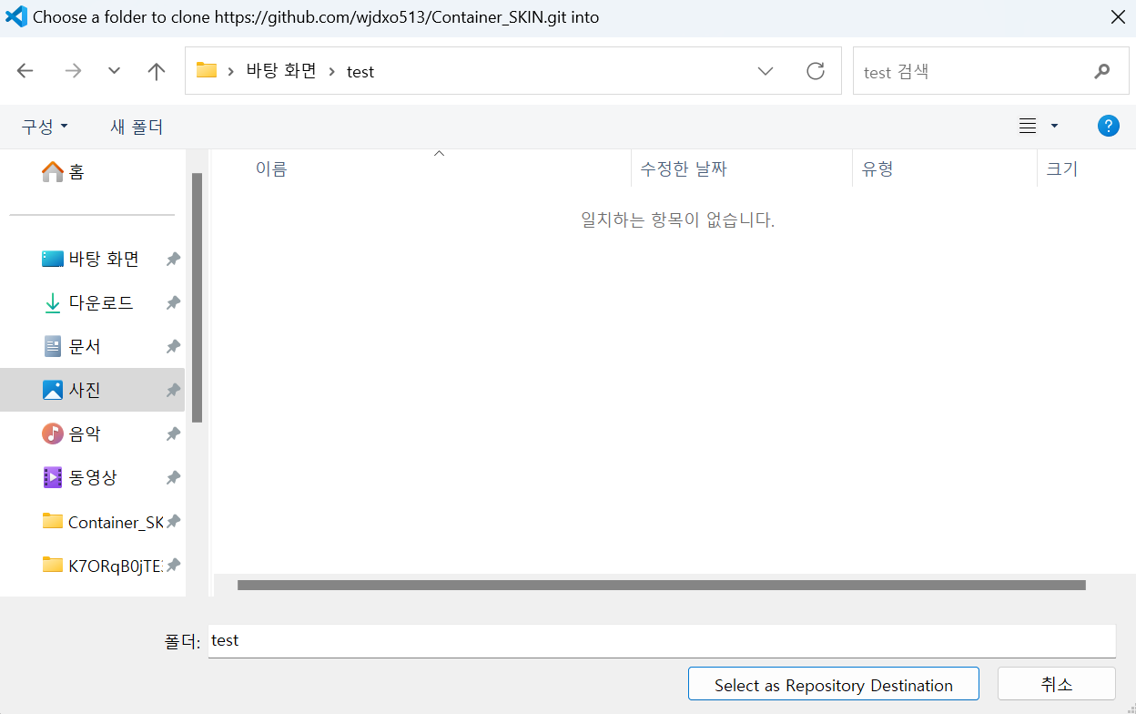 9. 로컬 레파지토리를 선택합니다. 8번의 깃허브 레파지토리를 선택하거나 로컬 레파지토리를 선택하거나 하나만 연결하셔도 큰 문제는 없습니다.