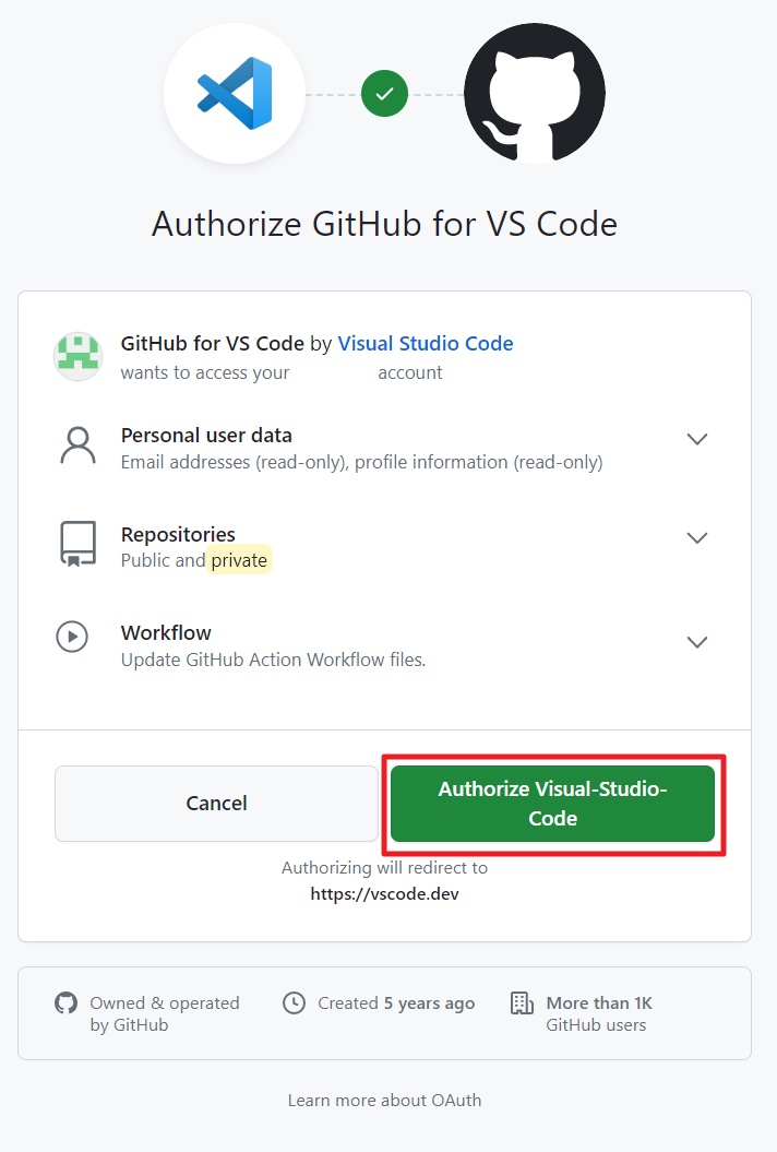 5. Authorize Visual-Studio-Code 버튼을 클릭합니다.