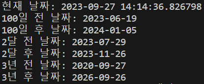 print("100일 전 날짜:", (today - day1).date())